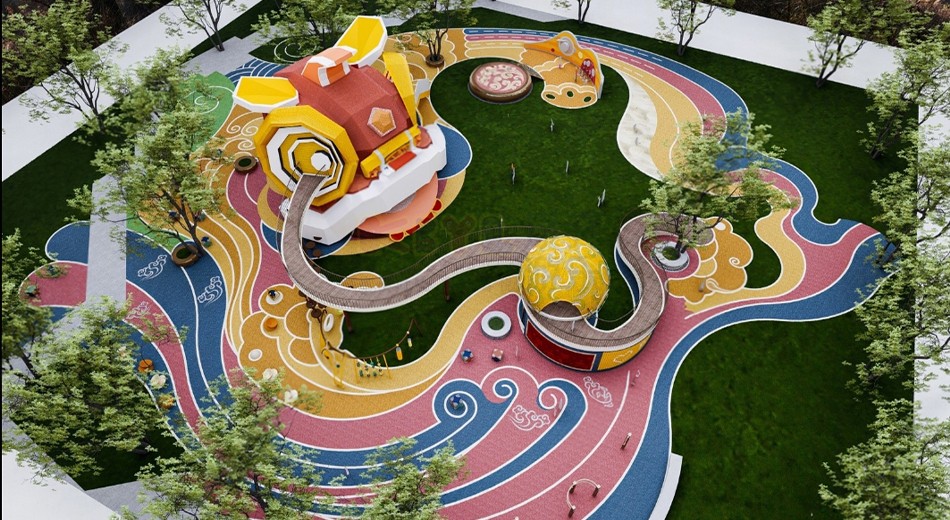 總的來說,國風獅子主題戶外兒童無動力樂園是一個融合了中國傳統文化和現代兒童樂園元素的場所,為孩子們提供了一個充滿樂趣和安全的游戲環境,同時也注重兒童的成長和教育需求。